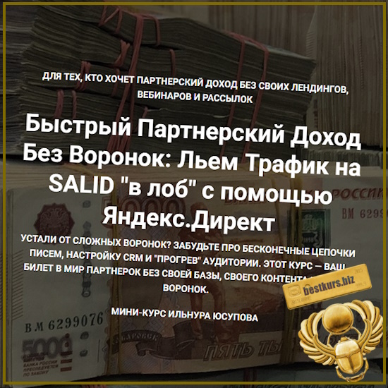 Мини-курс Ильнура Юсупова для тех, кто хочет партнерский доход без своих лендингов, вебинаров и рассылок.