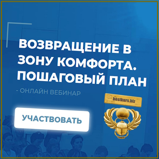 Приглашаем вас на уникальный вебинар “Возвращение в Зону Комфорта: пошаговый план”. Это авторская разработка Сергея Ковалева, основанная на методах интегрального нейропрограммирования и принципах экзистент-анализа для изучения и исправления своей жизни.