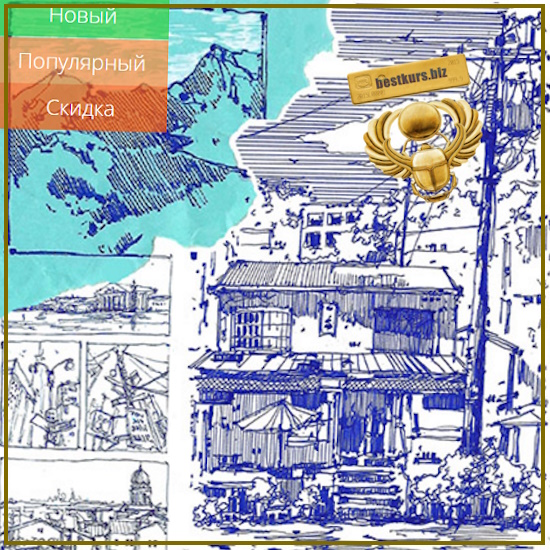 17 свежих разворотов в скетчбуке и 12 отдельных, чуть более длительных работ (где поработаем и с деталями, и с перспективой). Всего за курс мы нарисуем более 50 различных скетчей.