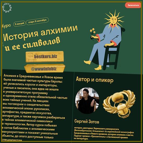 На лекциях мы поговорим о свидетельствах алхимической эпохи: рукописях, артефактах, предметах искусства, аппаратуре, а также научимся разбираться в тайнах алхимической символики и терминологии. Автор курса побывал в сотне библиотек с алхимическими манускриптами и покажет уникальные объекты, до этого доступные только специалистам.