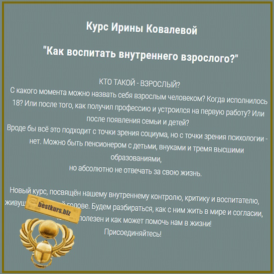 Курс посвящён нашему внутреннему контролю, критику и воспитателю, живущему в нашей голове. Будем разбираться, как с ним жить в мире и согласии, чем он полезен и как может помочь нам в жизни!