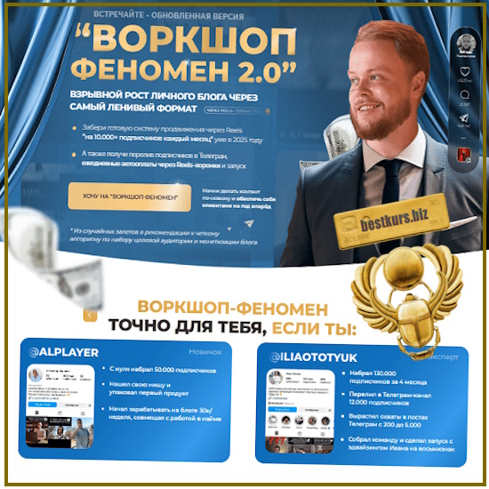 Забери готовую систему продвижения через Reels «на 10.000+ подписчиков каждый месяц» уже в 2025 году. Приди из случайных залетов в рекомендации к четкому алгоритму по набору целевой аудитории и монетизации блога. А также получи перелив подписчиков в Телеграм, ежедневные автооплаты через Reels-воронки и запуск