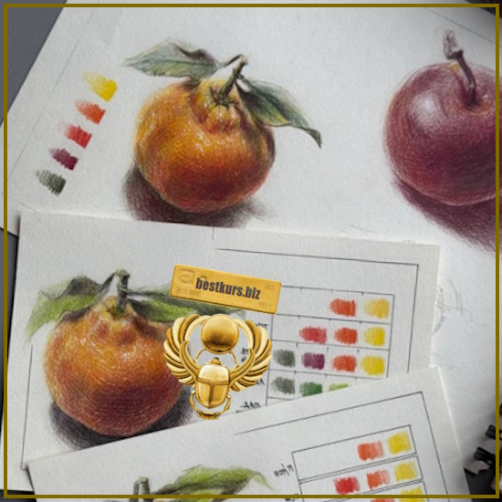В финале курса вас ждут уроки по рисованию простых фигур, фруктов и овощей как простыми, так и цветными карандашами.