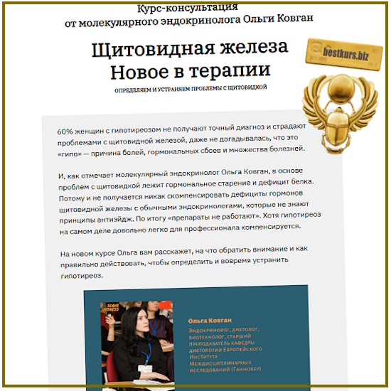 На новом курсе Ольга вам расскажет, на что обратить внимание и как правильно действовать, чтобы определить и вовремя устранить гипотиреоз.