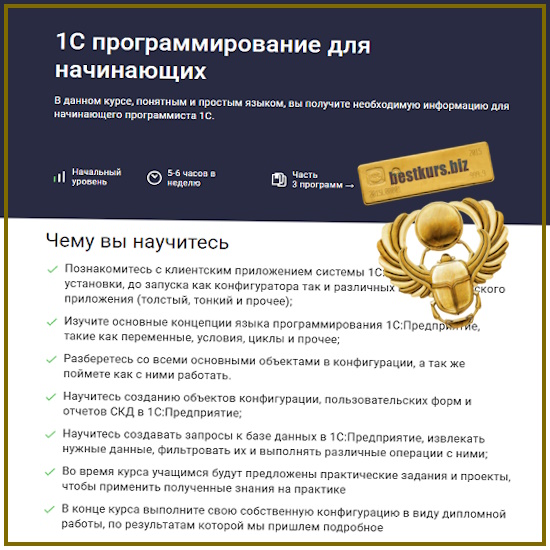Для кого: курс рассчитан как для начинающих 1С разработчиков, так и для тех, кто совершенно ничего не знал про 1С до этого момента. Мы начинаем учиться с самых основ.