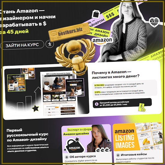 Первый русскоязычный курс по Amazon-дизайну. Вся информация в курсе практическая и основанная на собственном опыте и опыте десятков студентов.